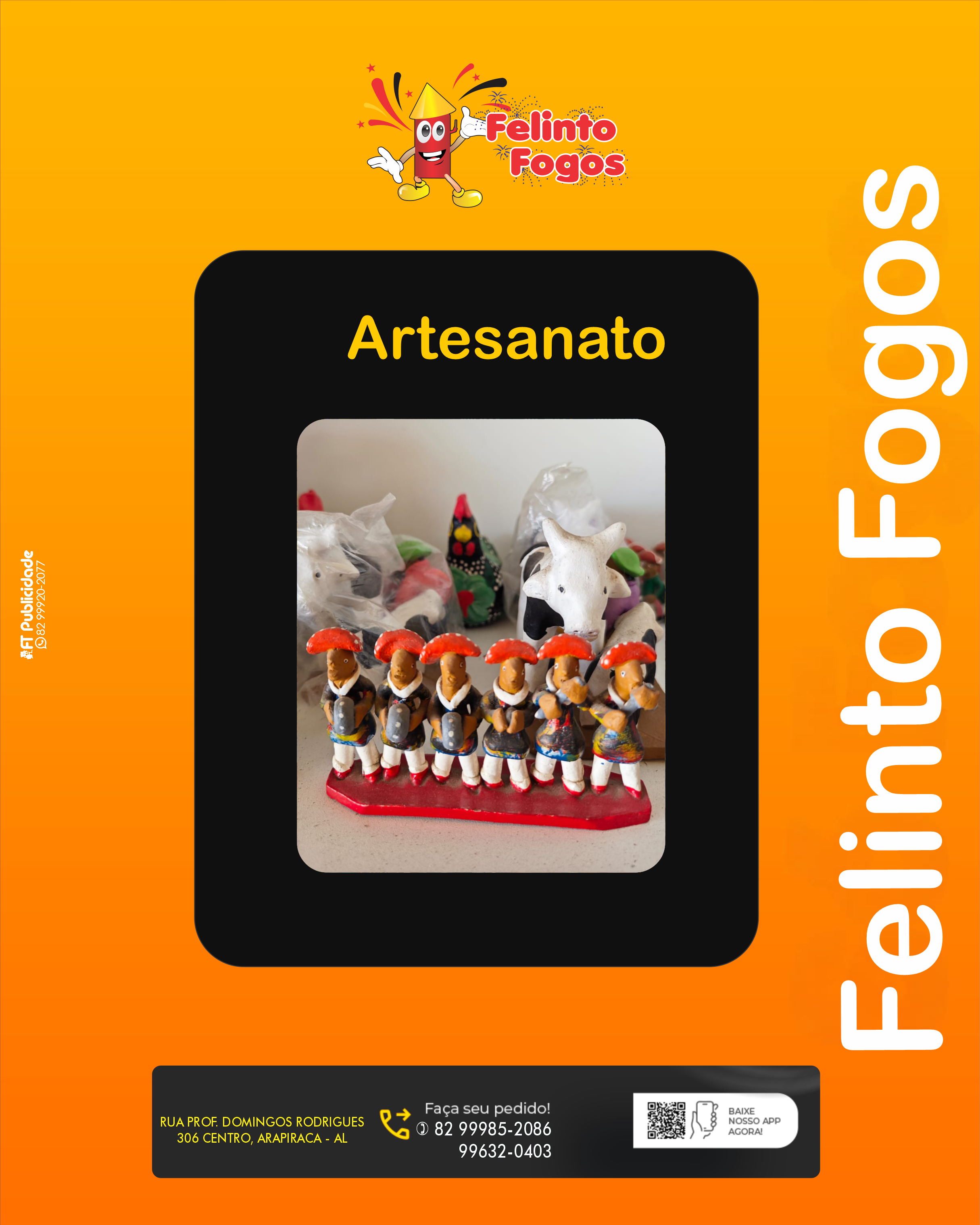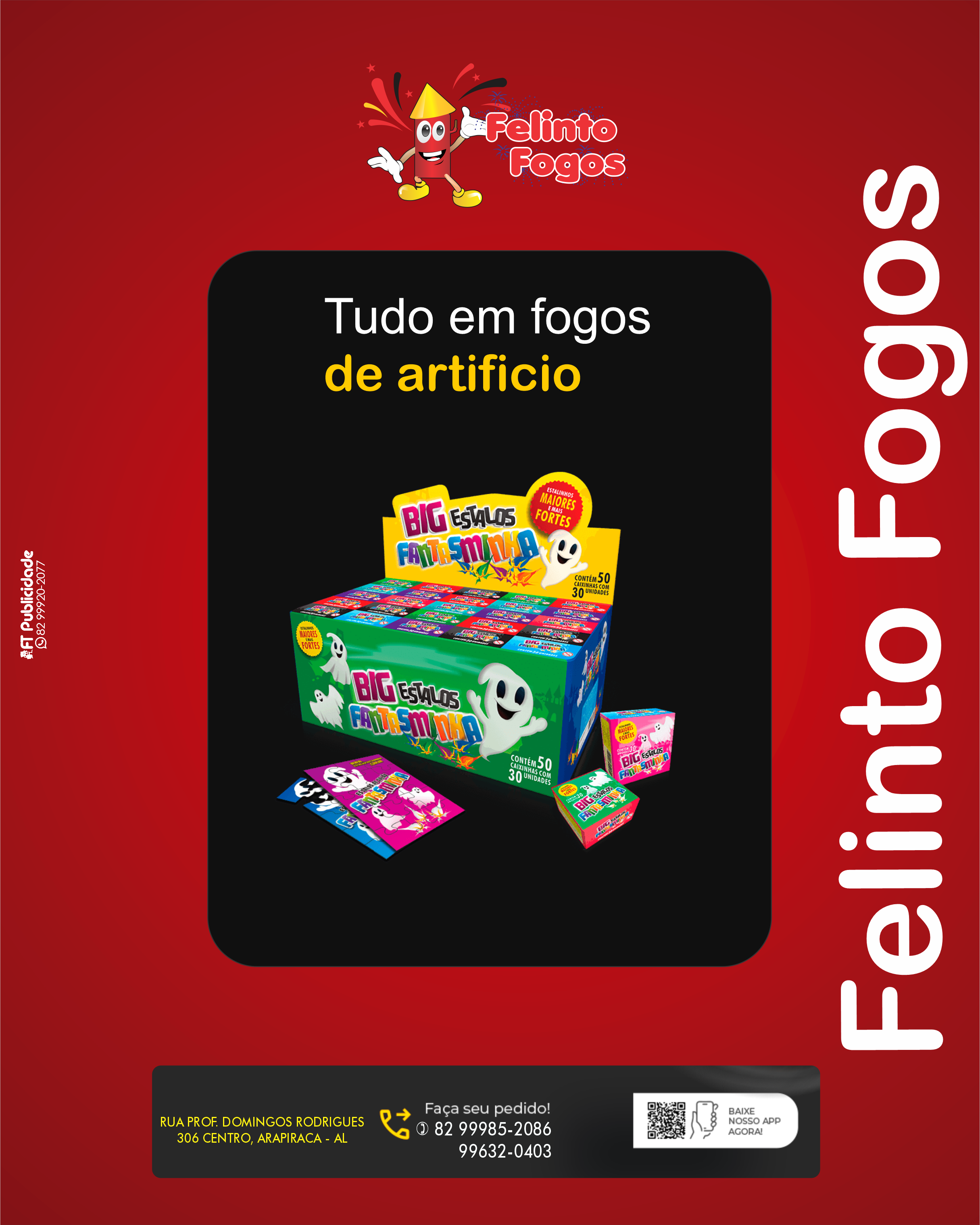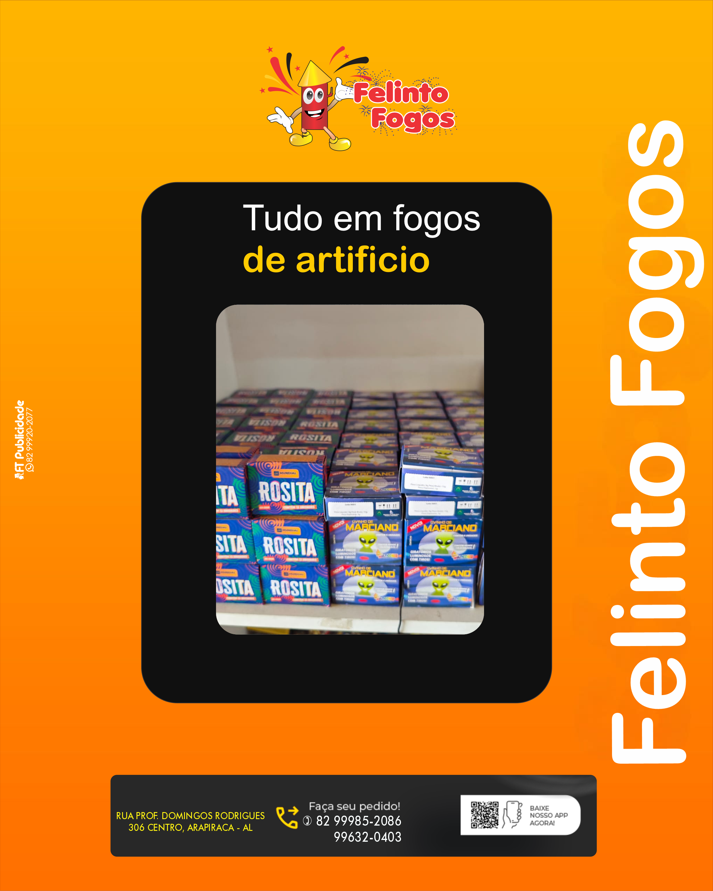 Felinto Fogos - Trabalhamos com fogos artifícios em geral. Loja 1: AV. Tiradentes, 148 - Centro - Girau do Ponciano Loja 2: Rua Prof. Domingos Rodrigues - 306 - Cento - Arapiraca Telefone: (82) 99985-2086 (TIM) / 99632-0403