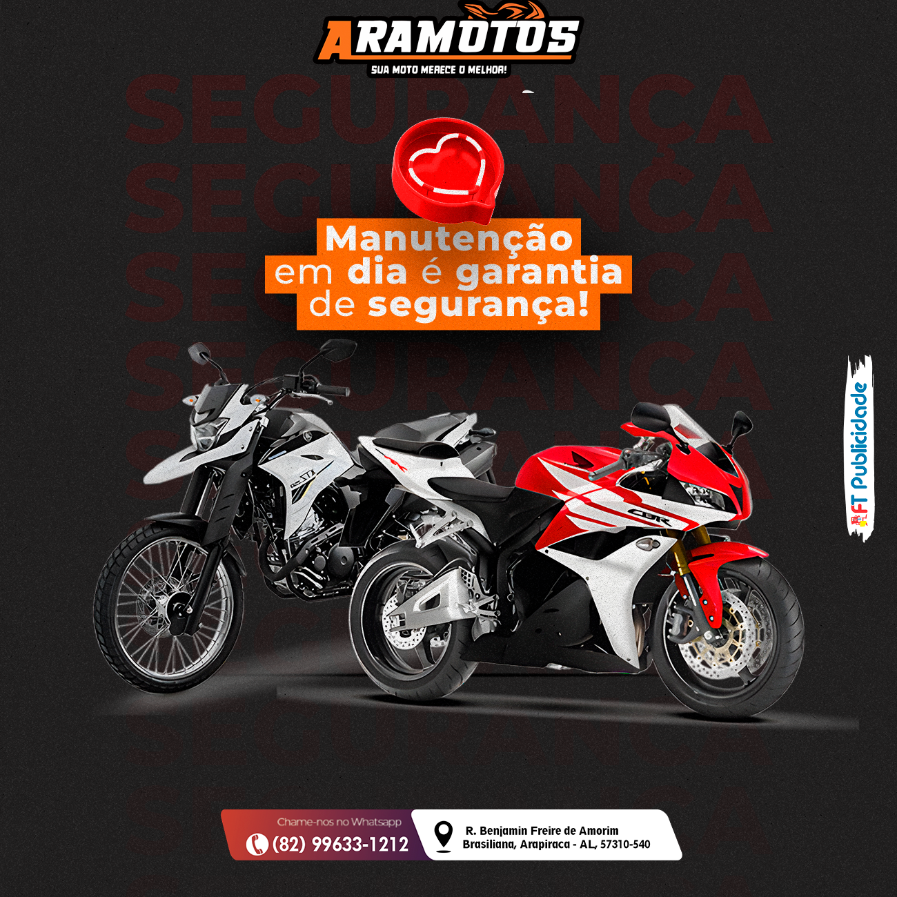 A Aramotos é referência em revenda de peças para motos em Arapiraca, oferecendo qualidade, confiança e preço justo para quem vive sobre duas rodas. Trabalhamos com uma ampla variedade de peças para motos de diversas marcas e modelos, sempre priorizando produtos duráveis e de alto desempenho. Aqui você encontra desde peças básicas até componentes mais específicos, tudo com atendimento especializado e compromisso com a satisfação do cliente. Se você procura segurança, economia e um lugar que entende de moto, a Aramotos é a escolha certa em Arapiraca. Passe aqui e sinta a diferença de quem realmente entende do assunto.